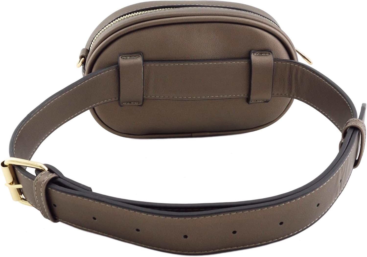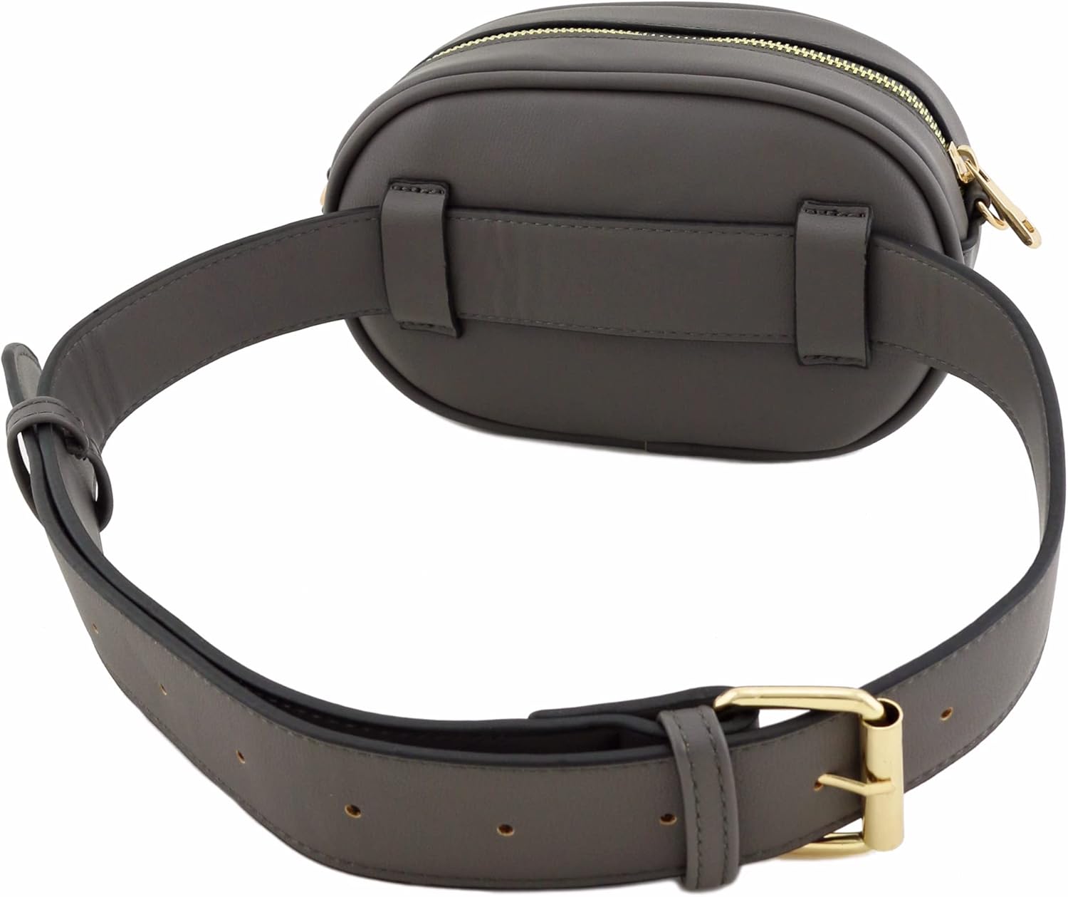 This stylish women's waist bag features an oval design that lends a smaller, more fashionable appearance.