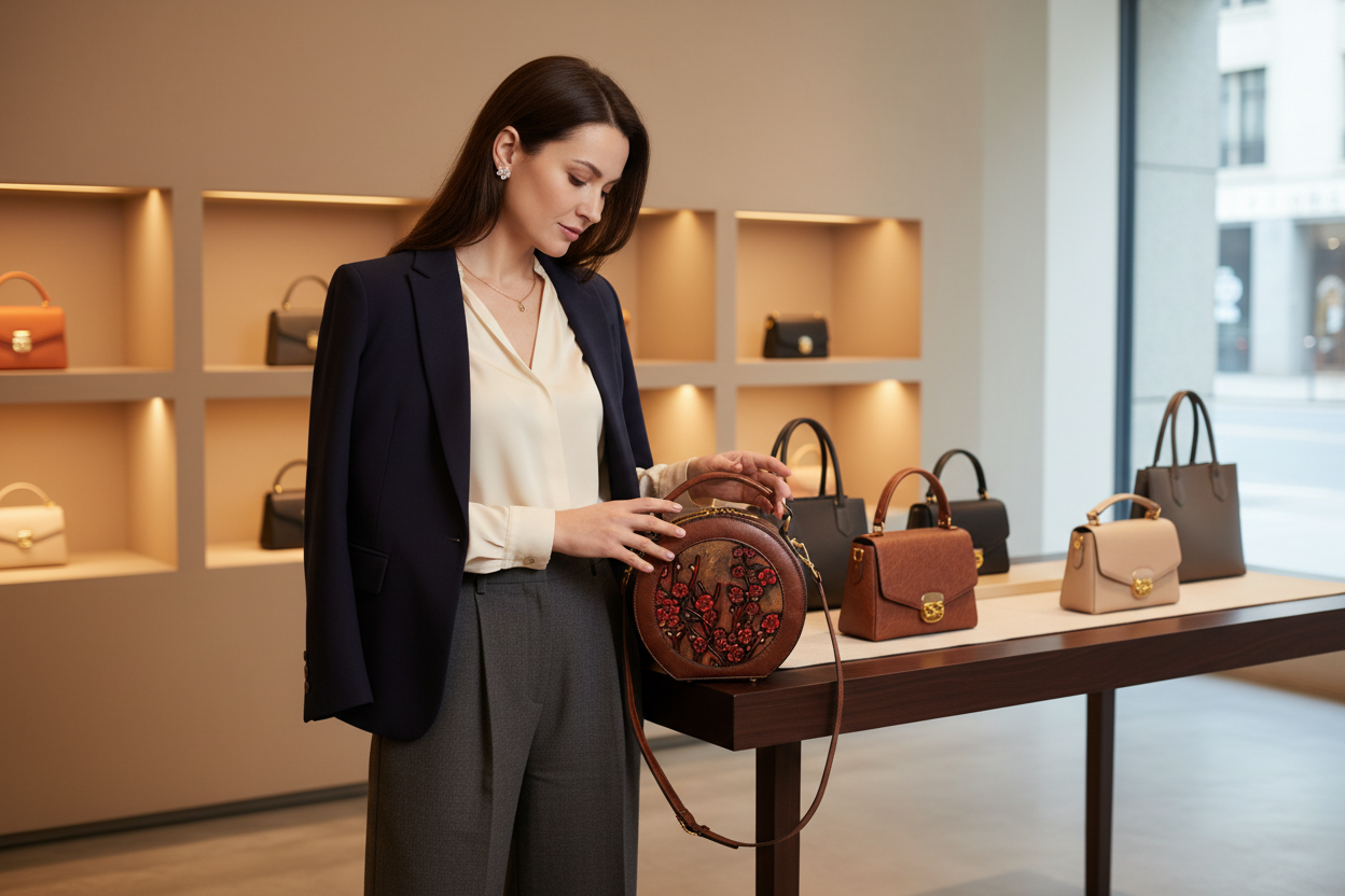 Measuring 7.87 x 7.48 x 3.54 inches (20×9×19 cm), this versatile piece transitions seamlessly from day to evening, delivering luxury craftsmanship in a compact, wearable form.